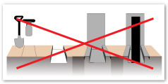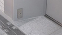現在販売されている止水板の多くは、止水板本体・太いステンレス製(凹型)のサイド柱と下部レール(止水板を落 し込む溝)で構成されています。設置工事は、止水板が床面より下がる為、溝を掘り・サイド柱下部と下部レールを取付け・床面と溝の隙間を埋める工事が必要です。(床面より下がった下部レール内に溜った水を排水する場合は、水抜きの為、配管工事も必要になります。)
